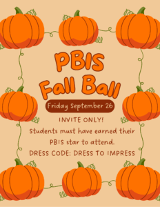 It’s time to celebrate our amazing students! Those who earned their September Star are cordially invited to attend the September PBIS Fall Ball!