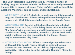 Click here to sign up to borrow a Rube Goldberg Machine Take & Try Kit: