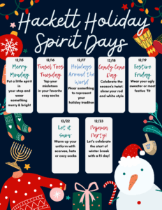 Hackett Holiday Spirit Days- Begin Monday December 15